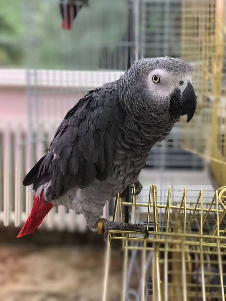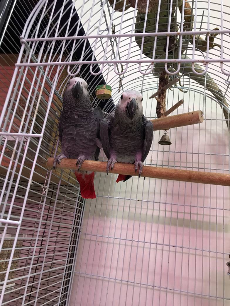 Çilek (Sağ taraftaki, dişi, 6 yaşında): Afrika Grisi Papağanı Epilepsi hastası ve ilaç kullanmak zorunda, sağ gözünde tümör mevcut, sol ayak parmakları felçli. Tezcan (Erkek, 6 yaşında): Afrika Grisi Papağanı Circovirüs’ü mevcut ve ciddi şekilde kendini yoluyor, yaklaşıldığında ciddi şekilde bağırıyor, polis telsiz sesi çıkarıyor